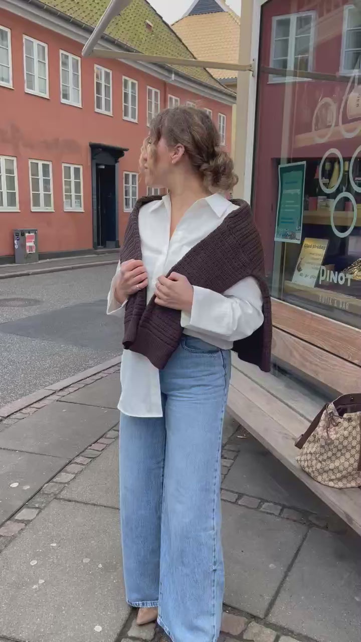 Mbulojeni veten me një sofistikim komod me këtë triko të thurur me teksturë kafe të thellë. E krijuar me një model delikate gypash dhe një dekolte klasike, kjo triko sjell ngrohtësi dhe stil të rafinuar në veshjet tuaja. Toni i tij i pasur dhe tokësor plotëson veshje të ndryshme, duke e bërë atë perfekt për stinët e tranzicionit dhe ditët më të freskëta.