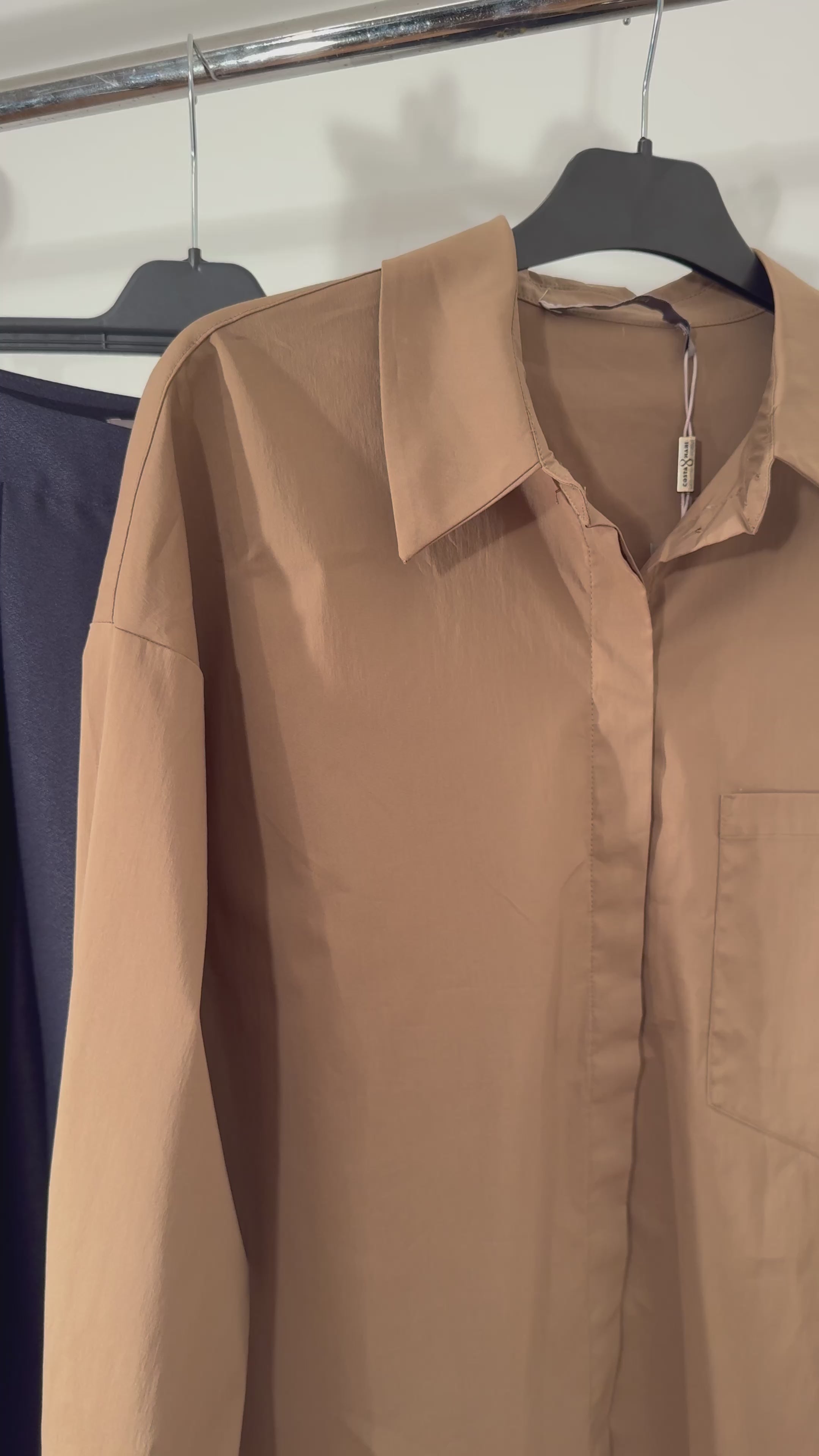 Kjo këmishë bezhë e madhe është ekuilibri i përsosur i stilit të lehtë dhe prakticitetit të përditshëm. Me një jakë klasike, çarçafë me butona të fshehur dhe një xhep të vetëm në gjoks, është një pjesë e gjithanshme që funksionon për pamje të rastësishme ose të zgjuara. Përshtatja e relaksuar shton rehati dhe një avantazh modern në veshjet tuaja.